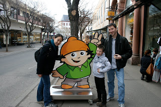 Bright and early Monday monring, we left for Mainz, our first destination in the Rhine Valley. Mainz, the capitol of the state Rhineland-Palatinate, is a rather metropolitan city with a large university. After a traditional Herth breakfast of musli (kind of a fruit "oatmeal"), we picked up Benjamin and headed down the autobahn. Mainz is about an hour's drive from where Biebelsheim.